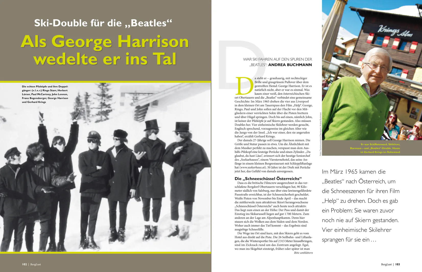 Faszination Berge: Bei dieser Magazin-Neuentwicklung ging es Ende 2014 nicht um Berge als Postkartenidyll, sondern um echte Menschen und echte Erlebnisse, die die Sehnsucht wecken, einfach loszufahren… Als Mitglied der Chefredaktion war ich für Konzept und Auswahl der Geschichten verantwortlich. Die Geschichte, die mir beim Recherchieren und Schreiben am meisten Spaß gemacht hat, führte mich nach Obertauern auf die Spuren der Beatles.